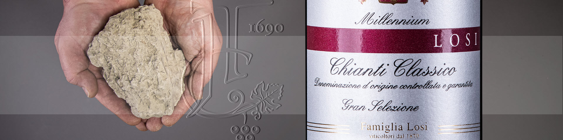 90% Sangiovese, 10% Canaiolo und Malvasia, Rotwein trocken "Galestro-Mergel Kalk". Hier auszugsweise die Original-Expertise unseres Partnerwinzers und Kellermeisters Riccardo Losi: "Der Chianti Classico Millennium LOSI wurde zum ersten Mal im Jahr 2000 mit dem hervorragenden Jahrgang 1997 verkauft und wird nur für die besten Jahrgänge wieder hergestellt. Schließlich fand unser Chianti Classico Millennium LOSI im Jahr des 60. Jahrestages der Gründung unseres Weinguts seine korrekte höhere Klassifizierung im Vergleich zur Riserva. Es wurde bei der Weltpremiere des Starts der Chianti Classico-Klassifizierung „Gran Selezione“ am 17. Februar 2014 mit 33 weiteren Weingütern vorgestellt". Die besten Trauben werden aus dem Weinberg „Conca“ (Muschelschale) ausgewählt. Dies ist der erste Weinberg, der von der Familie Losi bewirtschaftet wurde. Er liegt 320 Meter über dem Meeresspiegel und ist nach Südwesten ausgerichtet, um eine optimale Reifung der Trauben zu fördern. Der Boden mit mittlerem Gefälle hat eine reiche Struktur aus Tuffstein und Steinen, der hauptsächlich aus Tonschiefersandstein (Galestro) und Mergelkalksteinfelsen (Alberese) besteht, die typisch für den südlichen Chianti sind. Das Terroir und die Sonneneinstrahlung garantieren ein Endergebnis von hohem qualitativen Niveau. Die alkoholische Gärung erfolgt in Edelstahltanks bei einer Temperatur unter 27°C über einen Zeitraum von 15 bis 20 Tagen. Dies ist die Zeit, die erforderlich ist, um aus der Schale das richtige Gleichgewicht zwischen Farbe, Polyphenolen und Tanninen herauszuziehen. Nach der ersten Gärung wird der Wein in Zementfässer umgefüllt, wo die zweite Gärung stattfindet, mit der die Apfelsäure vollständig entfernt wird (Anmerk. auch BSA genannt: "Biologischer Säureabbau", der für nahezu alle Spitzenrotwein ein Muss ist). Anschließend ist der Wein endlich bereit, in Eichenfässern zu reifen, wo er etwa 36 Monate verbringt (französisches Holz, 10 hl = 1000 Liter Inhalt). Veredelung: mindestens 6 Monaten in Flaschen. Intensives Rubinrot mit einem lebhaften Farbton, der mit zunehmendem Alter zu Granat-Bernstein neigt, voll und frisch mit Pflaumennoten und einem Balsamico-Touch (reif), fein und komplex, attraktive, runde und seidige Struktur mit einem angenehm anhaltenden trockenen Abgang. Essensempfehlung: Rinderrippenauge (Bistecca alla Fiorentina), Lamm, Wildschwein und gereifter Käse.