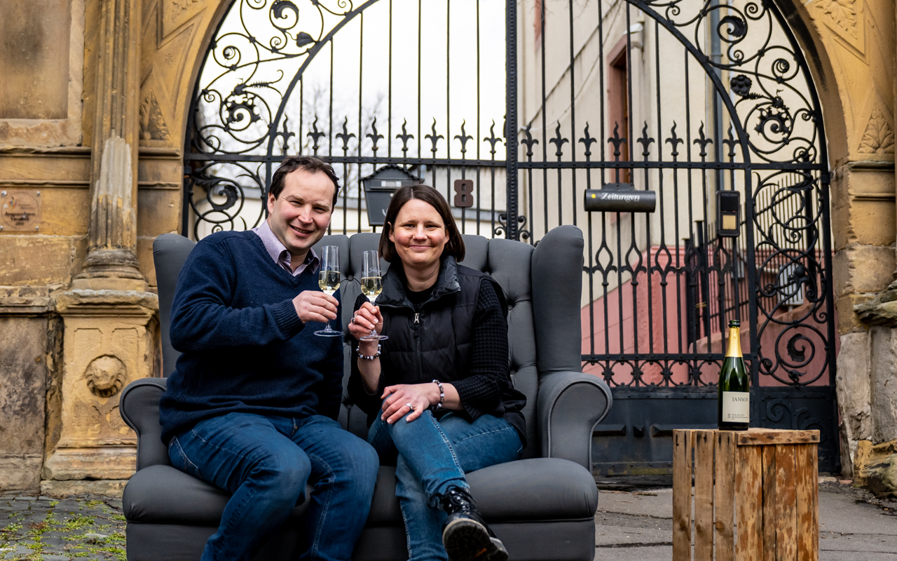 "Traditionelles deutsches Winzerhandwerk mit einem Schuss "New Worlds Spirit", so beschreibt sich selnst das äußert sympatische und tatkräftige Winzerpaar Kurt und Sarah Janson aus Bockenheim am nördlichsten Teil der Deutschen Weinstrasse (Mittelhaardt/Pfalz). "Wir sind eine Familie bestehend aus drei Generationen unter einem Dach. Ein Unternehmen, gepowert von unverzichtbaren Mitarbeitern und mit der Geschichte von sechs Generationen, zu Hause auf dem ehemaligen Sitz des Grafen vom Leiningerland – der Emichsburg. Unsere Familie bewirtschaftet rund um das Schlossgut mittlerweile 30-35 Hektar Weinberge am nördlichen Beginn der Deutschen Weinstraße in der Pfalz. Seit 1831 leben die Jansons auf dem von Sandsteinmauern umgebenen Grundstück der ehemaligen Burg des Grafen Emich XI von Leiningen, der diese in ein Schlösschen verwandelte. Der Zahn der Zeit ließ vom Schlösschen wenig übrig – was über so viele Jahre aber blieb, ist die Leidenschaft zum Wein und der Natur, die Entschlossenheit zu wachsen – und immer wieder etwas Einzigartiges zu erschaffen. Wir lieben unsere Geschichte, wir lieben Familie und wir lieben was wir tun! Die Familie: Weingut Schloss Janson – das sind nun seit über 15 Jahren Kurt (Inhaber, Weinmaker) und Sarah (Marketing, Events, Verkauf), die sich 2001 während eines Sommerpraktikums auf Long Island, New York – Sarahs Heimat – trafen. Das sind unsere drei Kinder – eng mit dem Familien-Weingut verbunden und überall zu sehen, zu hören und einfach mittendrin und dabei. Das sind auch Kurt Sr. und Annesuse Janson, die durch ihr jahrzehntelanges Engagement den Grundstein für den heutigen Erfolg des Weingutes gelegt haben. In unserem Familienweingut sind Mitarbeiter nicht einfach nur Mitarbeiter, sondern Teil der Familie. Wir arbeiten eng zusammen, tauschen uns ständig aus und sind füreinander da. Ein gutes Arbeitsklima liegt uns sehr am Herzen. Nachhaltigkeit. Natur. Tradition: Gegensätze ziehen sich bekanntlich an – Tradition und Moderne, bodenständig und unkonventionell – Kurt und Sarah! Wir sind nicht kurz und prägnant, wir sind Gegensatz pur. Und doch verbindet uns so viel Wichtiges, was uns zu dem macht, wer wir sind und an was wir beide glauben. Wir glauben an Nachhaltigkeit und an den respektvollen und behutsamen Umgang mit der Natur. Wir glauben daran, bestmögliche Weine zu machen, die schmecken! Wir glauben an Fairness und an langfristiges Denken im Sinne der vorangegangenen und nachfolgenden Generationen." Quellen: https://weinbibliothek.shop/rechtliches/impressum/