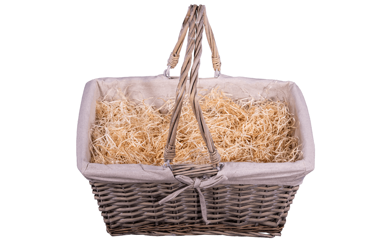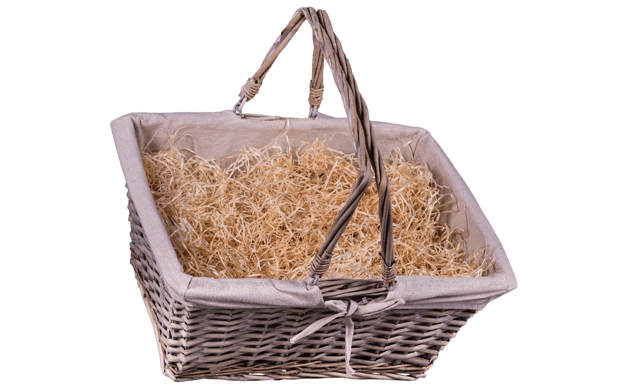 Geringer Bestand(!) Abwechslungseich bestückter, moderner, grau gekalkter und handgeflochtener Weidenkorb mit hellem Innenfutter aus Leinen. Bestens geeignet für bis zu vier mittelgroße Flaschen und Dekomaterial bzw. Accessoires. Korb und Holzwolle sind umweltbewusst und nachhaltig hergestellt, da fast ausschließlich recyclingfähige und nachwachsende Materialien verarbeitet wurden.